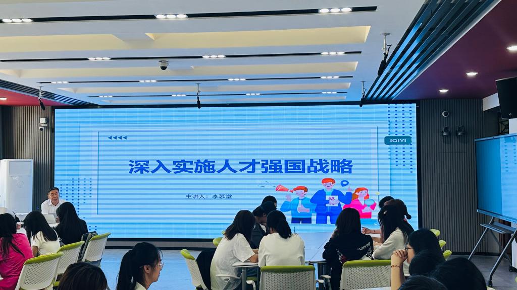 课堂上,师生们欣赏了现场表演的情景剧《等待》,深入了解了两弹一星功勋邓稼先先生的感人故事。李慕堂以“什么是人才”为切入点,从建设人才强国的重大战略意义、历史进程和新时代人才强国建设实践路径三个方面,向同学们介绍了新时代背景下人才发展的特点、现状和面临的挑战。