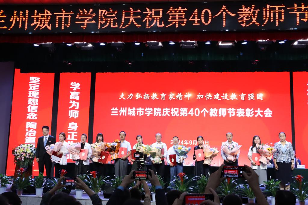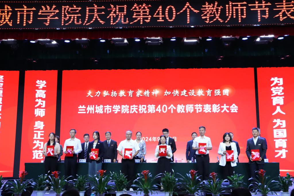 庆祝大会在振奋昂扬的国歌声中拉开帷幕,李慕堂、牟录贵、魏晋华、张发旺、王素云、陈伟分别宣读了第三批新时代甘肃省大中小学党建“对标争先”培育创建单位和个人名单、《beat365在线唯一官网关于表彰从事教育教学工作满30年教职工的决定》、2023—2024年度beat365获得省部级以上教学、科研类荣誉称号教师及团体名单、《中共beat365在线唯一官网委员会关于表彰2024年度师德先进个人的决定》和《中共beat365在线唯一官网委员会关于表彰2024年度十佳班主任的决定》。校领导为获得以上荣誉的教师代表颁发了奖章和荣誉证书。2023—2024年新入职教师进行了入职宣誓。从教30年教师代表、师德先进个人代表、十佳班主任代表和新入职教师代表分别在会上发言。
