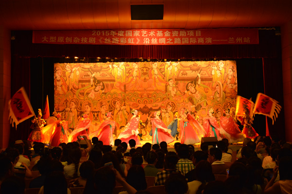 7月4日晚,2015年度国家艺术基金资助项目——陕西省杂技艺术团原创杂技剧《丝路彩虹》沿丝绸之路国际商演活动兰州站首场演出在beat365校本部礼堂隆重上演。校领导梁延堂、王基和1000余名师生共同观看了演出。