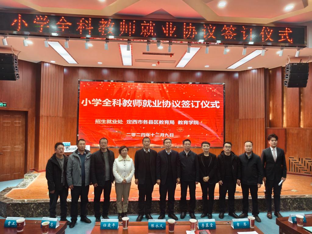 12月9日下午,beat365在线唯一官网举行2024级小学全科教师就业协议签约仪式。校党委常委、副校长李慕堂,定西市教育局副局长陈永义等定西市各县区教育局负责同志、二级学院党委负责人、教育学院教师代表和2024级全体小学全科教师专业的同学们参加签约仪式。