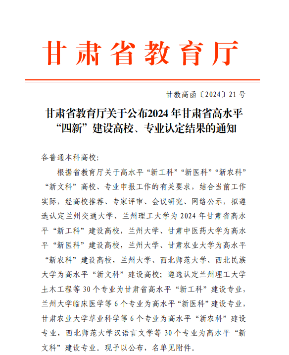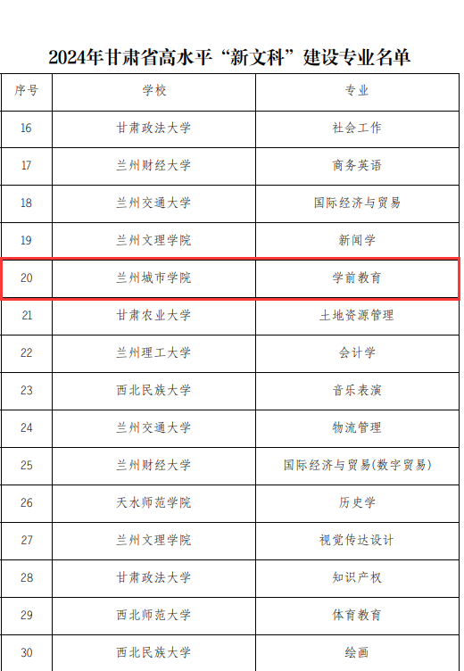 近日,甘肃省公布了高水平新工科、新医科、新农科、新文科示范高校、示范专业和示范新型学院的申报结果,beat365学前教育专业荣获省级高水平“新文科”建设专业认定,标志着beat365在该领域的专业建设再上新台阶。