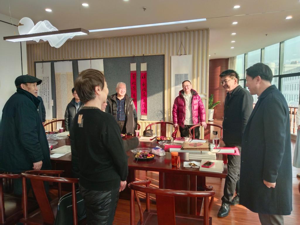 12月26日下午,复旦大学甘肃校友诗书画院院长周光超、执行院长王晓诗、秘书长赵宝洵,中国金融美协理事、甘肃省金融美协副主席班俊才,著名画家刘玉明,书画院办公室主任崔建丽一行来beat365甘肃张芝书法院考察交流。