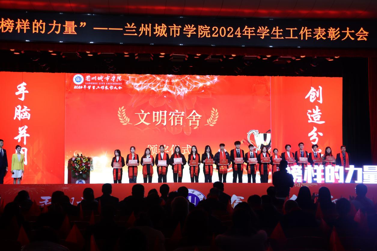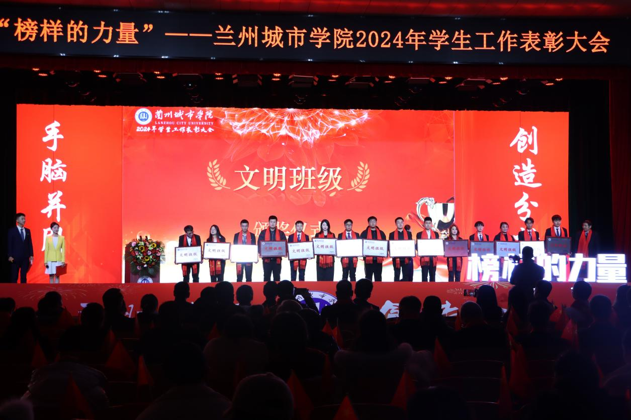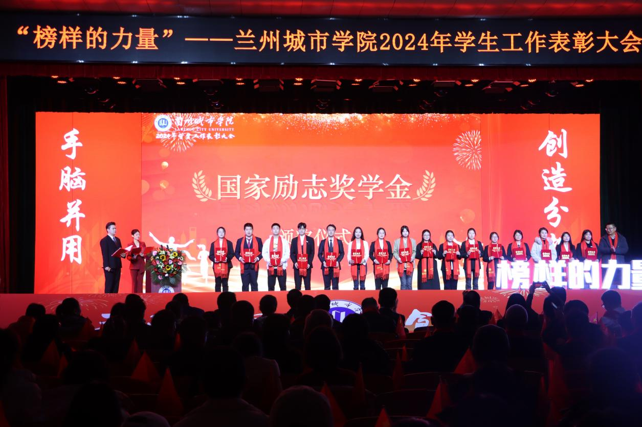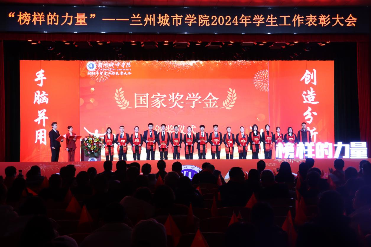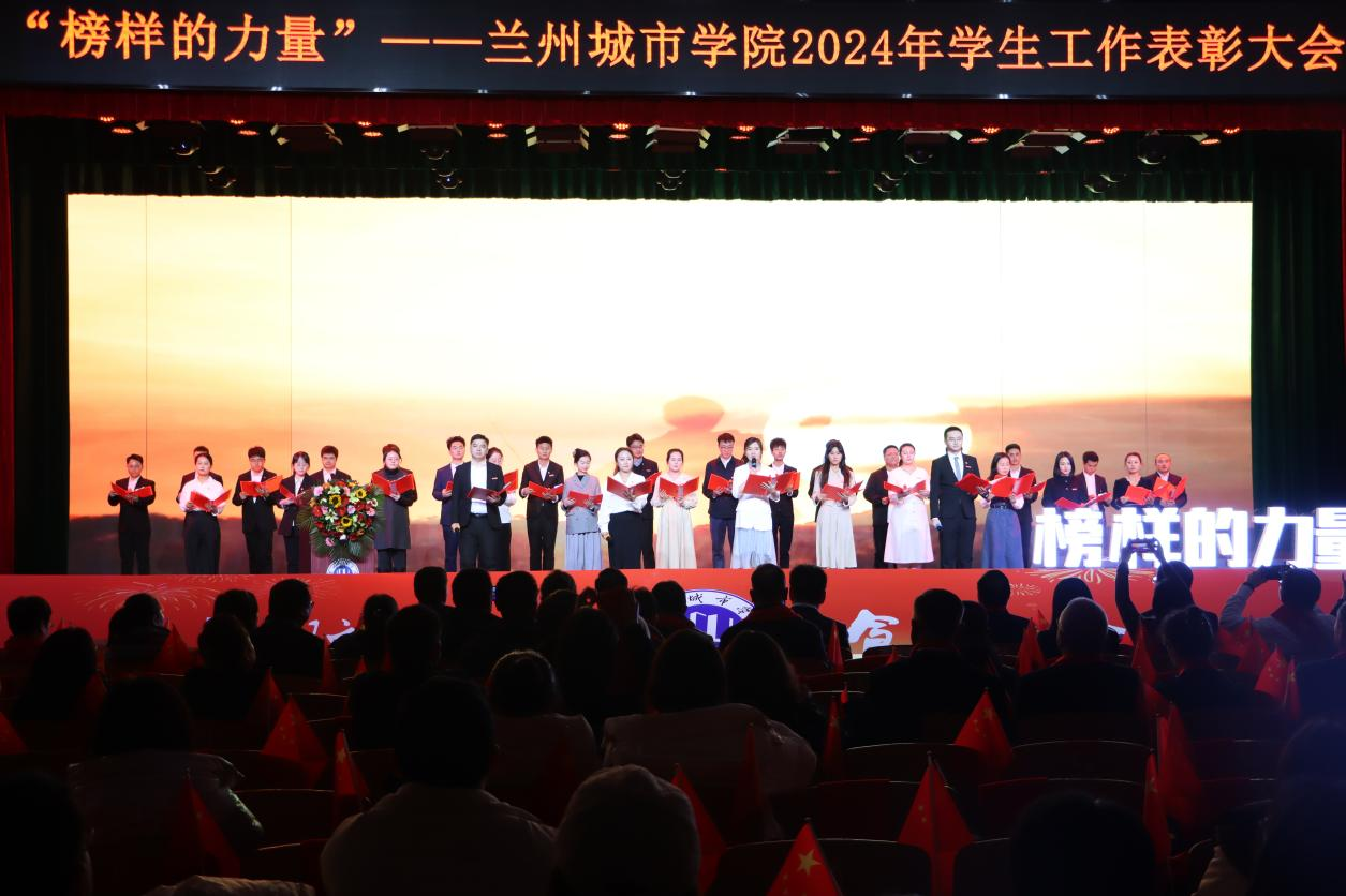 为全面总结学校2024年学生工作,涵育学风建设文化,打造“榜样的力量——朋辈领航”育人品牌,进一步促进学校班风、学风、校风建设,激发全体师生砥砺奋进,推动beat365学生工作高质量发展,12月27日下午,学校在校本部大礼堂隆重召开“榜样的力量”——2024年学生工作表彰大会。校党委副书记、校长韩高年,校党委常委、副校长李慕堂,校党委副书记牟录贵,校党委常委、副校长魏晋华和兰州市安宁区武装部负责人出席表彰大会。机关教辅部门负责人,二级学院党委书记、院长、分管学生工作副书记,二级学院学生工作办公室负责人,全体辅导员,获奖学生家长代表、“十佳班主任”代表和学生代表共1200余人参加大会。