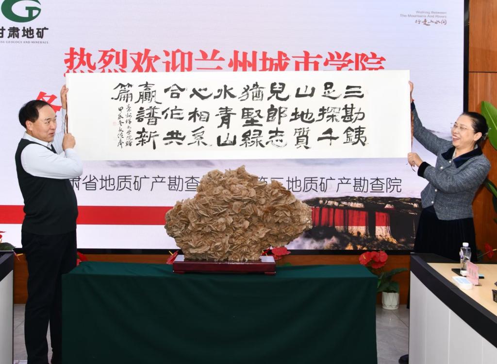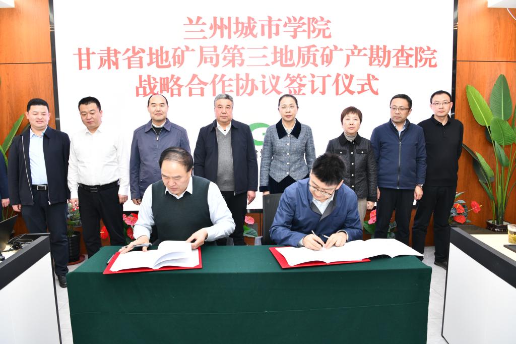 12月30日下午,学校与甘肃省地矿局第三地质矿产勘查院举行战略合作协议签约暨合作基地揭牌仪式。学校党委书记曹洁,党委副书记、校长韩高年,党委常委、副校长魏晋华,党委常委、副校长王素云,甘肃省地矿局第三地质矿产勘查院党委书记、院长丁书宏,党委副书记董瀚,党委委员、副院长蒙轸、姜鑫、张震出席签约仪式。仪式由董瀚主持。双方相关职能部门、二级学院负责人参加活动。