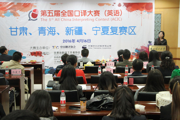 此次大赛由中国翻译协会、中国对外翻译有限公司将联合主办,甘肃省翻译工作者协会、中译语通科技(北京)有限公司和兰州理工大学外国语学院承办。全国口译比赛(英语)以满足我国日益扩大的对外交流需求,培养高素质翻译人才,促进翻译学科建设和翻译行业的繁荣与发展为宗旨,为口译人才展现才能和加强交流搭建了良好的平台。比赛内容为中英互译,全面考验参赛选手的语言水平、口译技能、心理素质等综合能力。四省(区)复赛设一等奖2名,二等奖4名,三等奖10名。来自四省(区)13所高校的47位选手参加了两轮三个环节的比赛。