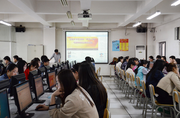 4月8日下午,beat365在线唯一官网学生党员“两学一做”专题网络培训示范班开班。来自马克思主义学院、文学院、化学与环境科学学院、旅游文化学院、幼儿师范学院的100名学生党员参加了开班仪式。