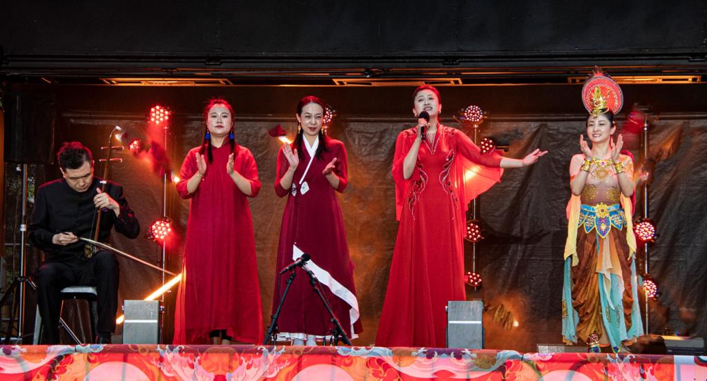 2月7日至8日,“新春嘉年华”在克市维多利亚广场举行。何颖总领事与梅杰市长、民族社区部长马克·米切尔、南岛部长詹姆斯·米格、国会议员哈米什·坎贝尔、凡妮莎·威宁克、陆楠、梅根·伍兹、鲁本戴维森和多位市议员出席开幕式。韩高年带领beat365在线唯一官网教育交流访问代表团现场观看演出并慰问演职人员。由beat365音乐学院5名专业教师组成的演出代表团为“2025新春嘉年华”带去了精彩纷呈的文艺曲目和舞蹈表演。文艺演出在民乐重奏《国乐盛世》中拉开序幕,承载着新春的喜庆与希望,热烈的节奏展现了中国节日的欢乐气氛;民乐重奏《茉莉花》《彝族舞曲》、独奏《赛马》等曲目轮番上演,传统民族乐器古筝、二胡、琵琶将中国传统音乐的魅力展现得淋漓尽致,悠扬的中国旋律奏响了东方文化的交融与共鸣,赢得了现场观众的热烈掌声。演职人员倾情献唱《灯火里的中国》《芦花》,让每一位身在异国他乡的华人感受到来自祖国浓浓的温情,更加坚定了他们心中对祖国的热爱和自豪。敦煌舞蹈《丝路.飞天》以优美的舞姿和独特的韵律展现出古老敦煌文化艺术的博大精深,向外国友人直观地展示了飞天神韵。演艺工作者们充分演绎了如何用用舞台讲好中国故事、敦煌故事、丝路故事和甘肃故事。