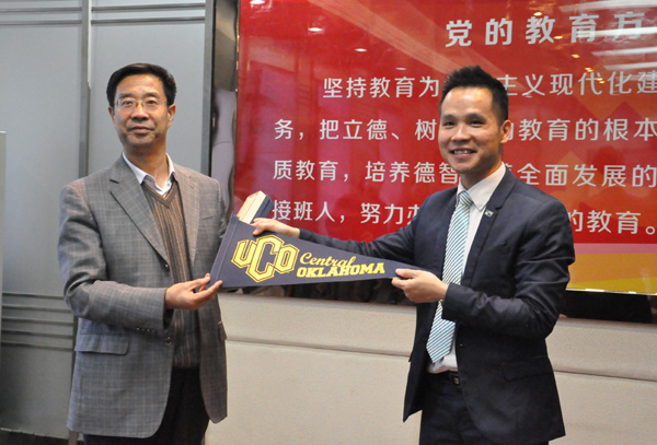 11月16日下午,美国中央俄克拉荷马大学国际部主任Timothy Kok、省教育厅国际合作与交流处处长王筱亭和省外办相关人员一行6人来beat365访问交流。校党委常委、副校长梁延堂,校长助理张社平出席座谈会。