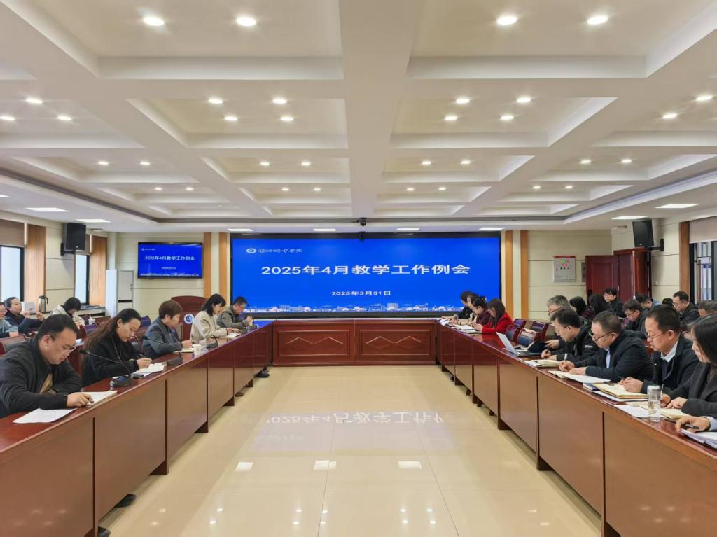 3月31日下午,学校在校本部知行楼一楼第二会议室召开2025年4月教学工作例会。各二级学院院长、主管教学副院长及教务处全体人员参加会议,校党委常委、副校长王素云出席会议。