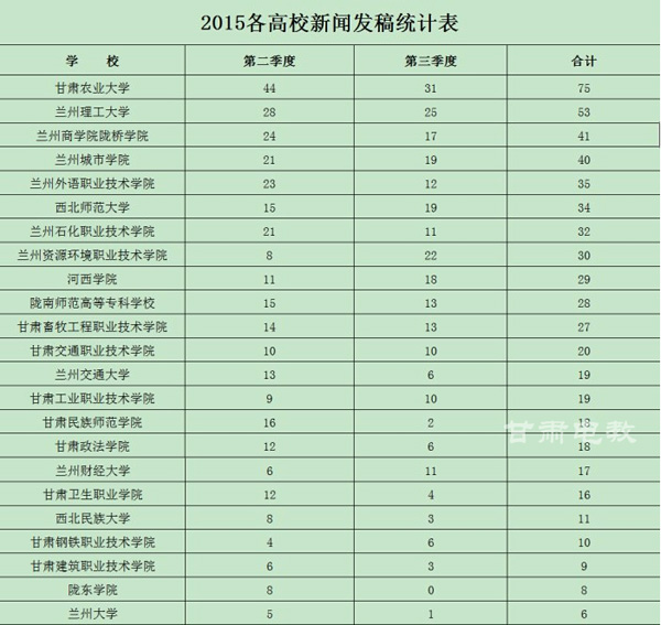 日前,省教育厅通报了2015年第二、三季度教育信息报送工作,beat365在今年二、三季度共向省教育厅门户网站“甘肃省教育厅”报送信息40篇,发稿40篇,在全省44所高校中位居第四。通报指出,今年以来,各地教育部门、省属各高校认真贯彻落实国家和省上教育工作会议精神,紧紧围绕教育改革、发展、稳定工作大局,结合本地本校实际,及时、全面、准确向省教育厅报送工作信息,为上级领导机关了解情况、科学决策和指导工作发挥了重要作用,也向社会宣传了我省教育工作取得的成绩,营造了良好的舆论环境。原文链接http://www.gsedu.gov.cn/Article/Article_31330.aspx