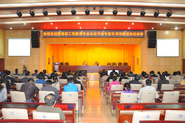 10月14日上午,应教务处邀请,教育部工程教育专业认证评估专家、华东理工大学教务处处长乐清华教授在校本部逸夫图书馆六楼国际会议中心作了题为“工程教育认证通用标准解读”的报告。党委常委、副校长梁延堂主持报告会。各二级学院全体院领导、教学科研办公室人员、系主任、实验室主任、部分教师,教务处、教学质量监测与评估中心全体人员听取了报告。