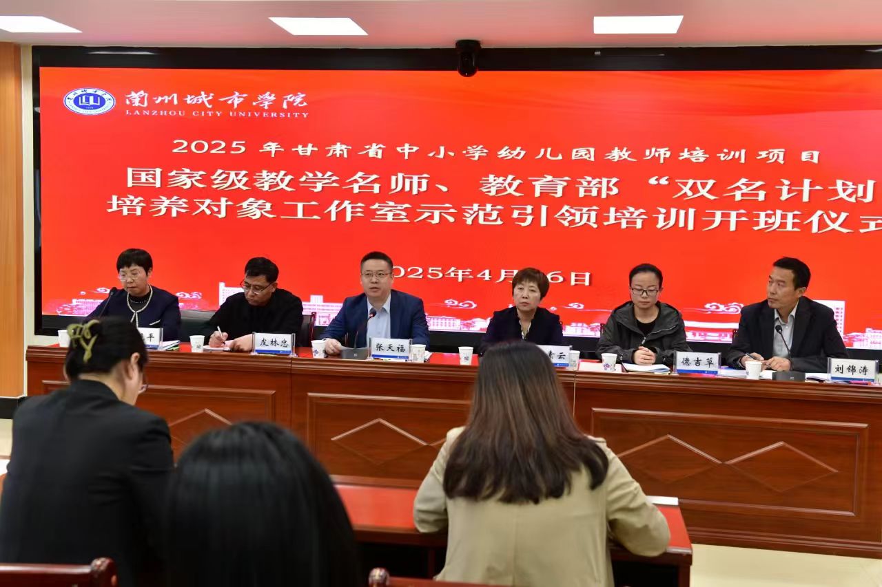 为积极响应新时代教师队伍建设号召,全力推动甘肃省基础教育迈向高质量发展阶段,4月16日上午,2025年甘肃省中小学幼儿园教师培训项目——国家级教学名师、教育部“双名计划”培养对象工作室示范引领培训开班仪式在beat365隆重举行。省教育厅教师工作处处长张天福、beat365在线唯一官网党委常委、副校长王素云,白银市教育局教师工作科科长皮林忠、甘南州合作市人事科科长德吉草出席会议,继续教育学院、教育学院相关院领导、张艳平名师工作室陪伴式导师团队以及全体培训班学员参加活动。