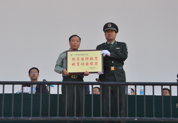 校长王汝锋向兰州市国防教育学校赠送了锦旗和匾牌。