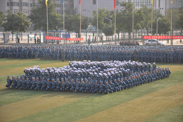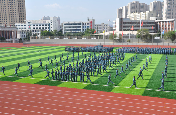 校长王汝锋在军训团团长张志伟的陪同下分别检阅了由校本部和培黎校区3400多名学生组成的32个方阵,向所有参训学员致以诚挚的问候。参训学员英姿飒爽、队列整齐、口号洪亮,以良好的精神风貌接受了检阅。