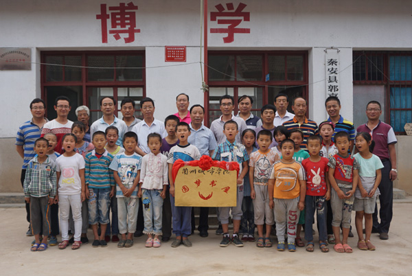 王汝锋和陈元定共同为“圆梦书屋”揭牌。揭牌仪式结束后,王汝锋一行与镇上干部、邵咀村干部及教师代表进行了座谈,就学校下一步“双联”和“精准扶贫”工作进行了沟通交流。