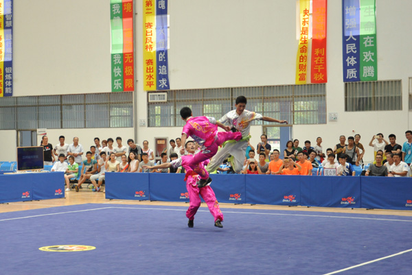 在武术比赛中,马元琪、王宁、余靖梓在男子甲组对练项目里为beat365代表团再添一金,余靖梓获得男子甲组棍术项目银牌,常祖艺、何一强、顾文斌获得男子乙组对练项目铜牌。