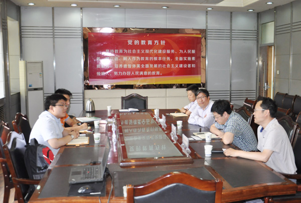 6月16日,中关村软件园工程实践教育发展中心院校合作部副主任张贝贝一行来beat365洽谈合作办学事宜。校党委常委、副校长张兴福,教务处、招生就业处、信息工程学院负责同志参加洽谈会。