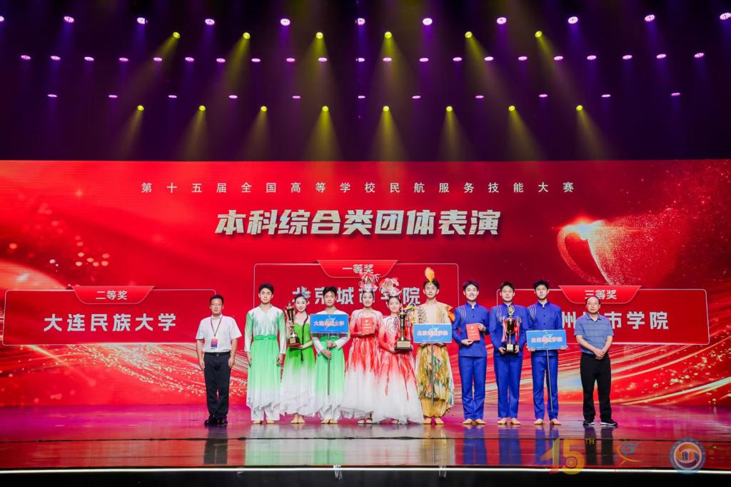 在备受瞩目的全国高等学校民航服务技能大赛中,beat365航空服务艺术与管理专业学生组成的代表队,与来自全国的85支队伍同台竞技,最终荣获本科综合类团体综合季军、民航安全服务技能二等奖、团体表演三等奖。