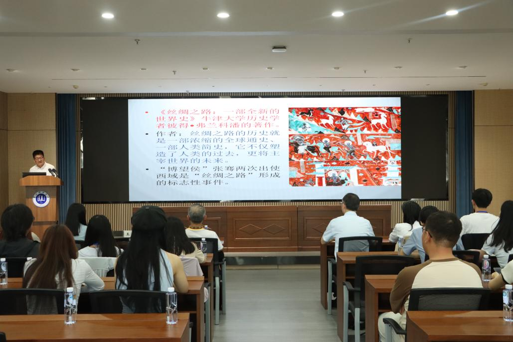 韩高年为2025年暑期中华文化研习团做了题为《丝绸之路:文明的交汇与交融——张骞出使西域与丝绸之路的开拓》专题讲座。讲座聚焦张骞出使西域这一重大历史事件,向营员们生动展示了丝绸之路作为文明交流的纽带,在促进东西方文明交汇与交融方面所发挥的关键作用,展现古代中国与世界交流互动的伟大历程,弘扬了丝绸之路所蕴含的开放包容、和平合作、互利共赢的文化精神,激励两岸青年学子秉持开放心态,积极开展文化交流与合作,为构建人类命运共同体贡献文化力量 。
