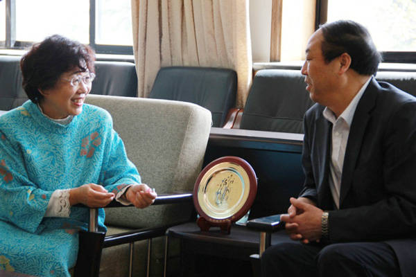 校党委常委、副校长刘举科与榛木美惠子教授进行了友好交流,并向其赠送了学校宣传画册和纪念品。