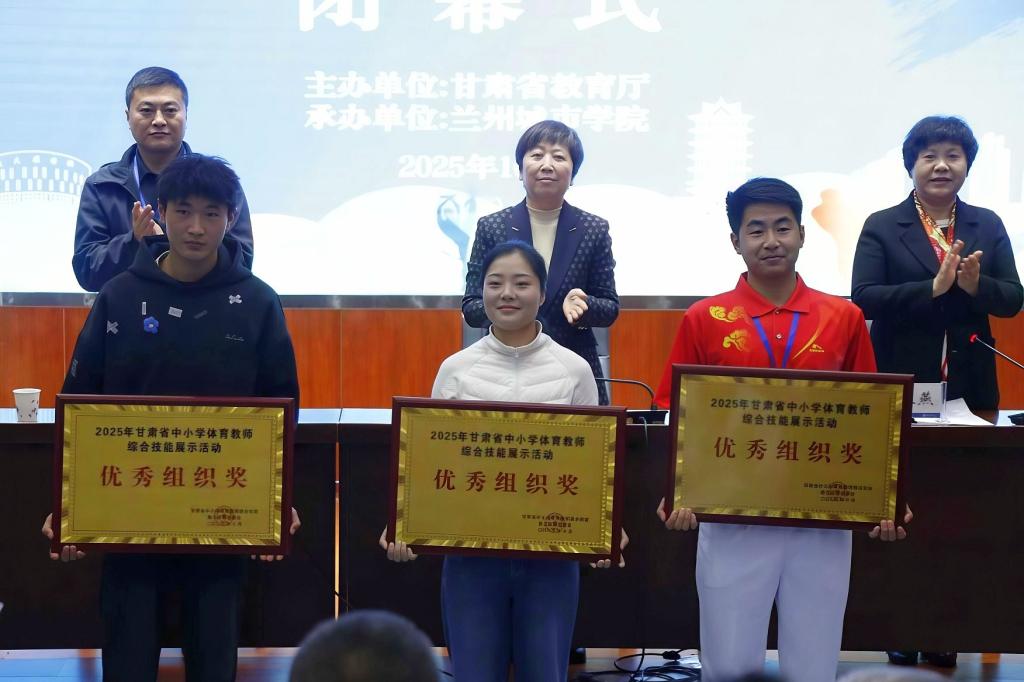 王素云致辞指出,经过紧张激烈、精彩纷呈的比赛,来自全省各地的中小学体育教师们在赛场内外切磋技艺、交流经验,呈现了精彩纷呈的教学片段、规范标准的技能演示,传递了“以体育人、以体润心”的教育追求,诠释了“健康第一”的教育内涵,充分展现了新时代甘肃省中小学体育教师的专业素养、精神风貌与责任担当,为推动我省中小学体育教育改革发展注入了新活力、凝聚了新动能。她希望,各位参赛教师以此次交流展示活动为新起点,将赛场收获的经验、锤炼的技能转化为教学实践,把“以体育人”的理念深度融入课堂教学,让体育锻炼成为学生健康成长的习惯,让体育精神成为学生品格养成的养分,让体育之花在陇原校园绚丽绽放,为培养德智体美劳全面发展的社会主义建设者和接班人筑牢坚实健康根基。