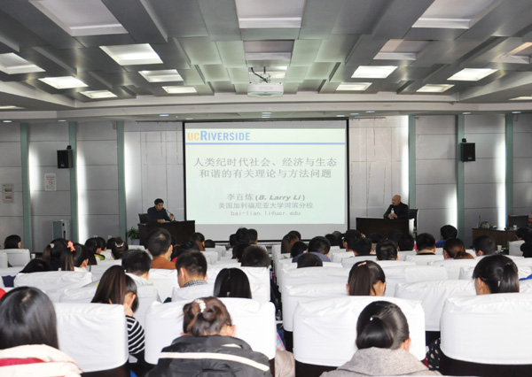1月7日下午,应beat365和中国科学院寒区旱区环境与工程研究所的邀请,美国加利福利亚大学河滨分校植物与植物科学系Bai-Lian Larry Li教授在综合楼三楼第一学术报告厅作了题为“生态复杂性与可持续性”的学术报告。科技处、教授委员会、化学与环境科学学院、城市经济与旅游文化学院的师生近200多人参加了报告会。