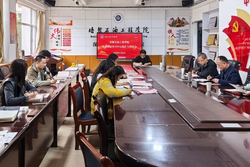 11月4日,培黎石油工程学院召开党委理论学习中心组(扩大)学习会,专题学习党的二十届四中全会精神和《习近平谈治国理政》第五卷重点内容。校党委常委、副校长方忠义及学校列席旁听工作组到场指导,学院处科级干部、党委委员、党支部书记参加学习。