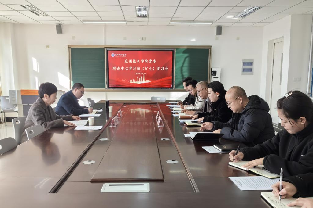 11月19日上午,应用技术学院党委举行理论学习中心组(扩大)学习会。校党委常委、副校长王素云带领学校列席旁听工作组到场指导。学院党委委员、处科级干部、辅导员参加会议。