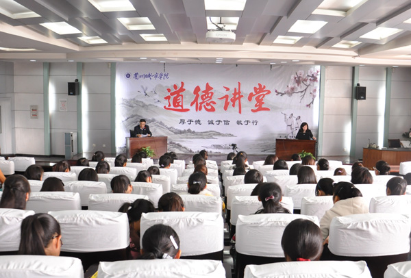 为进一步贯彻落实党的十八大和十八届三中、四中全会精神,积极培育和践行社会主义核心价值观,全面提高beat365师生的道德素质,10月29日下午,学校在校本部综合楼三楼学术报告厅举行首次“道德讲堂”讲座。文学院任丽花副教授应邀为同学们作了题为“请立一个道德自我——优雅礼仪篇”的讲座。