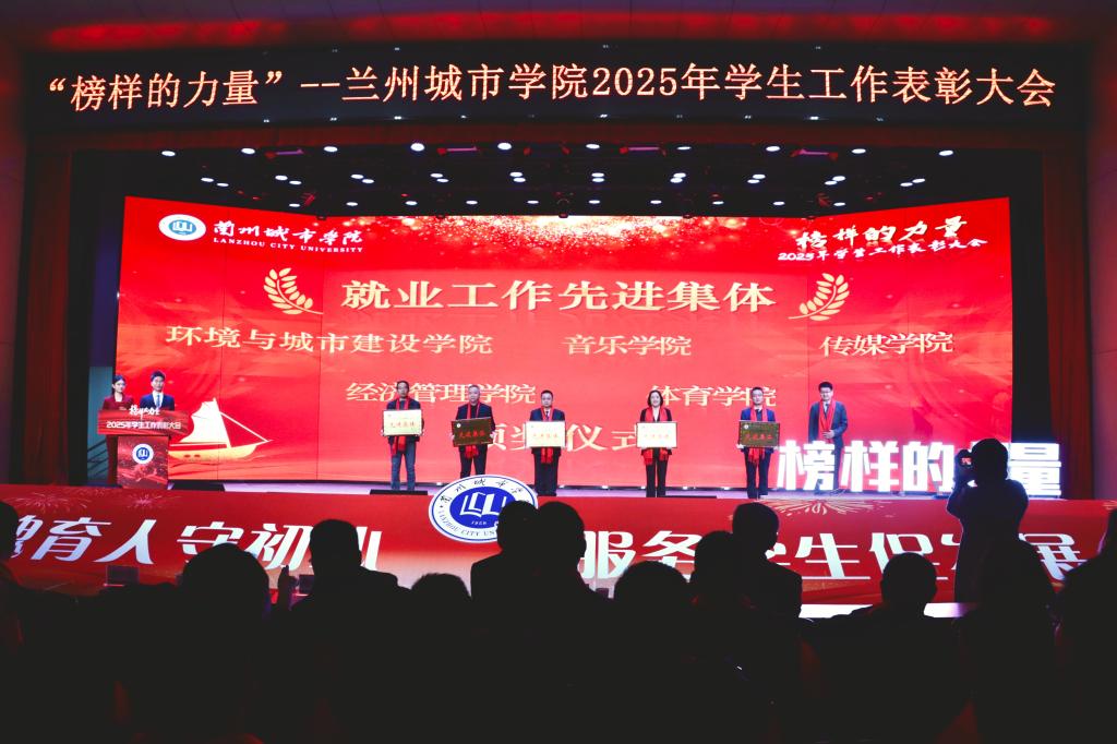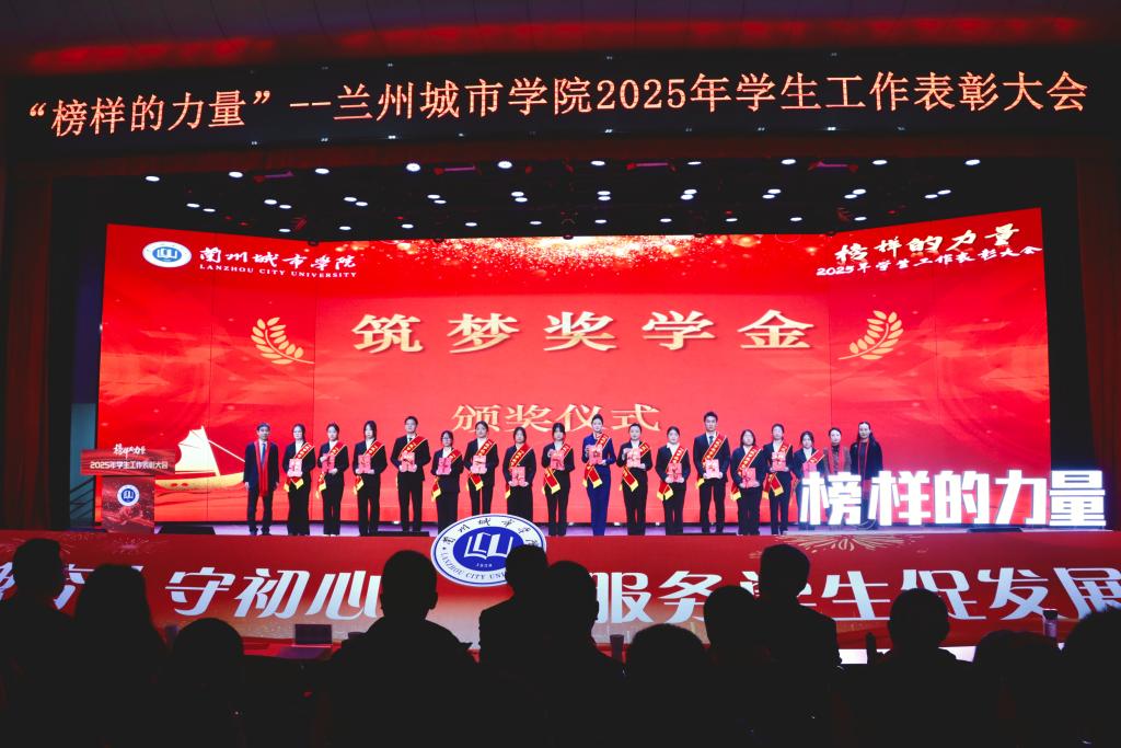 表彰大会分为“思想引领·砥砺奋进”“榜样力量·荣耀见证”“同心筑梦·扬帆起航”三个篇章校领导及学院领导分别为荣获2025年“学生工作先进集体”“就业工作先进集体”“文明班级”“文明宿舍”称号的集体,以及获得国家奖学金、国家励志奖学金、李政道奖学金、筑梦奖学金、校级三好学生、优秀学生干部、第十五届“挑战杯”甘肃省大学生课外学术科技作品竞赛获奖团队、退役复学一等奖学金和在beat365在线唯一官网2025年辅导员素质能力大赛获奖代表颁发了奖牌和荣誉证书。与会师生共同观看了《党建领航 青春筑梦》艾黎“一站式”学生社区建设宣传片与《砥砺奋进的2025》beat365在线唯一官网学生工作回顾视频。