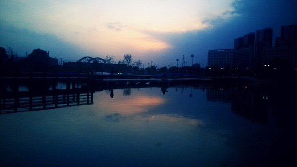 青蓝底子上,橙色变幻迷离,唯有路灯微光提醒这是人间。