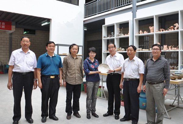 吴明明一行深入到beat365培黎校区,先后参观了美术学院陶艺工作室、雕刻工作室等,仔细了解了相关产品的生产工艺。双方就加强校地合作交换了意见,并商谈了建立合作关系的具体事宜。