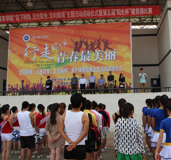 为了强化体育课和课外锻炼,更好地引导和帮助大学生提高参加体育锻炼的主观能动性,形成良好的体育锻炼习惯,校团委、学生会于5月28日下午,在校本部田径场举行“走下网络、走出宿舍、走向操场——行走的青春最美丽”群众性课外体育锻炼活动启动仪式。校领导刘举科、王基出席,学生处、体育学院、校团委负责人及1000余名学生代表参加了启动仪式。