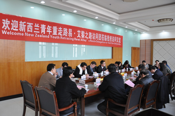 11月29日上午,由新西兰中华青年联合会主席高晓月率领的“重走路易·艾黎之路”访问团一行七人在国务院侨办国外司副处长肖骏、省外办副主任樊向勤的陪同下,来beat365访问交流。校长王汝锋,副校长姜秋霞与访问团成员进行了会谈。