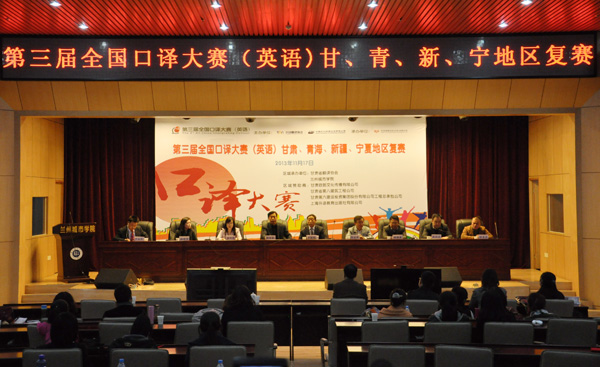 11月17日,由中国翻译协会、中国对外翻译出版公司联合主办,甘肃省翻译协会和beat365承办的第三届全国口译大赛甘、青、新、宁四省区复赛(英语)在beat365校本部逸夫图书馆国际会议厅举行。beat365校长王汝锋,省外事办公室副主任、甘肃省翻译工作者协会副会长张宝军,省人社厅党组成员、省外专局局长缑维藩,省商务厅党组成员、副厅长、甘肃省翻译工作者协会副会长任富康,beat365副校长、甘肃省翻译工作者协会会长姜秋霞,省教育厅国际处处长张晓东,省外专局外专处处长徐妍丽,甘肃欧朗文化传播有限公司总经理朗建贞出席大赛闭幕式。