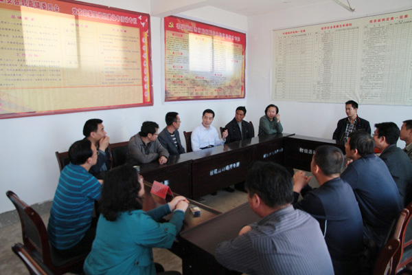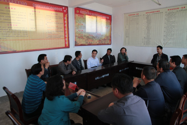 随后,王基一行在副镇长杨文杰的陪同下来到刘湾村,实地察看了刘湾村正在硬化的村级道路,了解了工程进展情况,并就下一步如何推进道路建设提出了意见和建议,积极协调秦安县交通局、施工单位、监理单位,加快施工进度,尽早让刘湾村324户村民、1526人受益。之后,王基主持召开了由村干部参加的座谈会,听取了村干部和村民代表关于抗旱、农业生产和发家致富奔小康的想法,并就下一步如何开展帮扶工作进行了沟通交流。