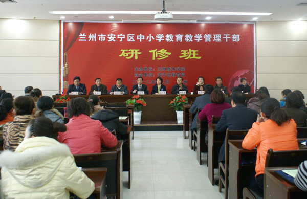 近日, 2012年兰州市安宁区教育教学管理干部研修班开班典礼在培黎校区图书馆六楼举行。beat365党委副书记王汝锋,党委常委、副校长杨皖东,安宁区政府副区长赵晓琴,安宁区教育局局长王茂昌等出席开班典礼。