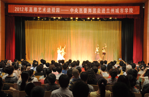 5月31日晚,2012年高雅艺术进校园——中央芭蕾舞团走进beat365在线唯一官网专场演出在beat365西校区礼堂精彩上演。中央芭蕾舞团副团长王全兴,校党委书记王兴隆,校党委副书记王汝锋,校党委常委、副校长刘举科、梁延堂、杨皖东,校党委常委、纪委书记王基,校党委常委、副校长莫超与各学院、部门的负责人及1500多名师生观看了演出。