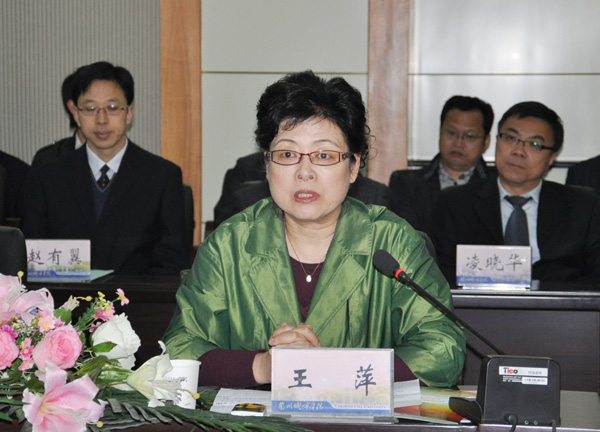 王萍在欢迎仪式上讲话,王汝锋致欢迎词。