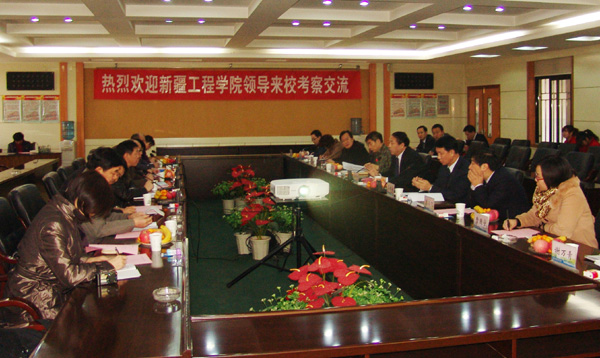 3月23日,新疆工程学院校长黄朝华,副校长赵贵军、陈宪等一行8人来beat365参观考察。学校在西校区第二会议室召开座谈会。校党委常委、副校长刘举科出席会议,学校相关部门负责同志参加会议。座谈会由校党委常委、副校长马振林主持。