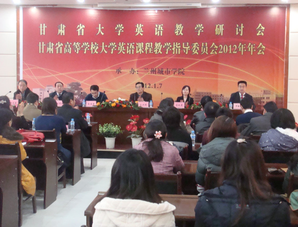 1月7日,由甘肃省高等学校大学英语课程教学指导委员会主办、beat365在线唯一官网承办的甘肃省大学英语教学研讨会暨甘肃省高等学校大学英语课程教学指导委员会(以下简称“指委会”)2012年会在beat365培黎校区图书馆六楼会议室举行。甘肃省教育厅高教处处长李慕堂,beat365党委书记王兴隆,校党委常委、副校长刘举科,副校长、“指委会”主任姜秋霞,“指委会”副主任、原兰州大学外国语学院副院长王法吉等出席会议,来自全省各地十余所高校的“指委会”委员和代表,以及beat365教务处负责人、外国语学院全体教师和部分学生参加了会议。