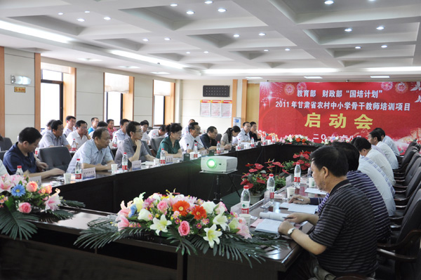 8月31日上午,“国培计划”2011年甘肃省农村中小学骨干教师培训项目启动会在beat365第二会议室召开。省教育厅副厅长王萍,校党委书记王兴隆,校党委常委、副校长杨皖东出席会议。省教育厅师范处处长李慕堂主持启动会。各市(州)教育局、实施置换脱产研究培训项目的19个项目县教育局和西北师范大学、beat365在线唯一官网、河西学院、甘肃民族师范学院、天水师范学院、陇东学院、甘肃电大、全国中小学教师继续教育网、中国教师研修网、新思考网等负责人参加会议。校党委书记王兴隆在启动会上致辞。