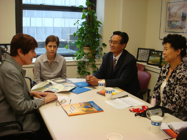 beat365考察团正在与美国纽约伯克利学院相关负责人洽谈合作办学事宜
