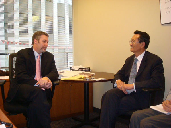 beat365考察团正在于美国三立国际集团副总裁黄少波先生商谈
