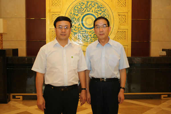图为孔庆浩校长与兰州市市长袁占亭(左)合影
