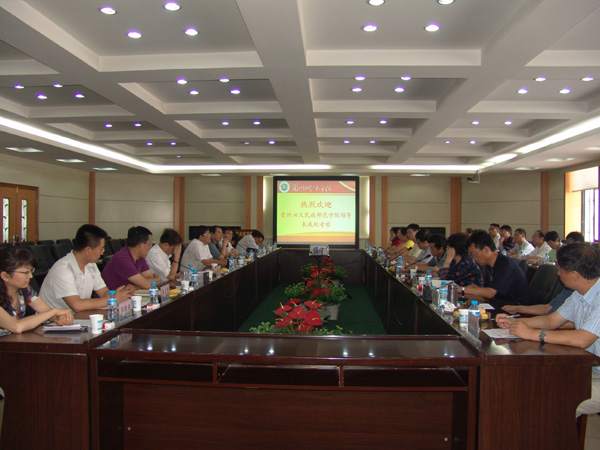 7月10日下午,贵州兴义民族师范学院副校长姜子昌、王家鑫率领该校考察团一行26人来beat365参观考察。学校在综合教学楼中层干部会议室举行欢迎座谈会,会议由校党委常委、副校长杨皖东主持。