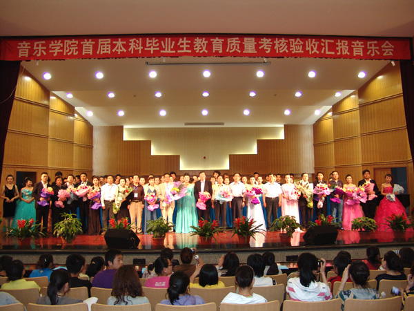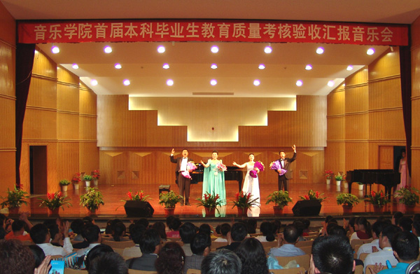 5月10日晚,beat365音乐学院首届本科毕业生教育质量考核验收汇报音乐会在音乐厅举行。教育厅专家组组长、西北师范大学副校长王嘉毅教授,评估专家组副组长、天水师范学院副院长马建东教授和西北师范大学教务处处长孙建安教授,兰州交通大学数理学院院长褚衍东教授,兰州理工大学教务处处长韦尧兵教授,兰州商学院校长助理、教务处长王学军教授,兰州一中副校长金东升老师同学校领导王兴隆、孔庆浩、王汝锋、刘举科、张兴福、杨皖东、马振林、梁延堂、王基观看了演出。