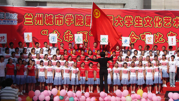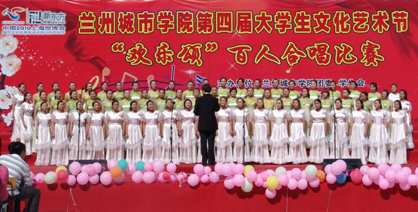 下午一点半,合唱比赛首先在培黎校区大学生活动中心举行,美术学院代表队以《爱我中华》、《众人划桨开大船》拉开了本次比赛的序幕,接着培黎校区其他四个代表队争相竞技,台上歌声飞扬,台下啦啦队的助威声、掌声不断,现场气氛极为热烈。培黎校区的比赛结束后,评委来到西校区11号宿舍楼前的活动现场,传媒学院以一曲《花儿与少年》拉开了校本部的比赛序幕。信息工程学院表演的《祖国不会忘记》以及城市经济与旅游文化管理学院表演的《国家》表达了对祖国真挚的祝福;体育学院表演的《相信爱》以其蓬勃的气势带给大家爱的力量。文学院《打起手鼓唱起歌》欢快而流畅。在五月灿烂的阳光下,从民歌金曲到红色经典,从红旗飘飘到大河奔流,催人奋进的旋律,高亢嘹亮的歌声,各学院方阵的欢呼声,久久飘荡在校园的上空,挥之不去。