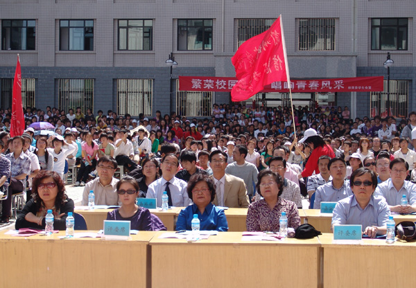5月14日下午,beat365第四届大学生校园文化艺术节“欢乐颂”百人合唱比赛分别在培黎校区大学生活动中心和校本部11号宿舍楼前举行。校党委书记王兴隆、校长孔庆浩出席观看比赛,宣传部、学生处、校团委和各学院党团总支负责人、学工办老师和全校约五千余名同学一起参加了活动。音乐学院部分专业教师担任了本次比赛评委。