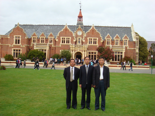 克赖斯特彻奇综合技术学院院长尼尔·邦斯博士与孔庆浩校长、商谈合作办学后合影。